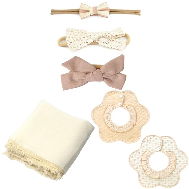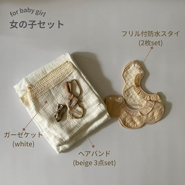 出産祝い 女の子 【シンプルなデザインが好きな方へ】 スタイ ヘアバンド ガーゼケット ギフト プレゼント セット