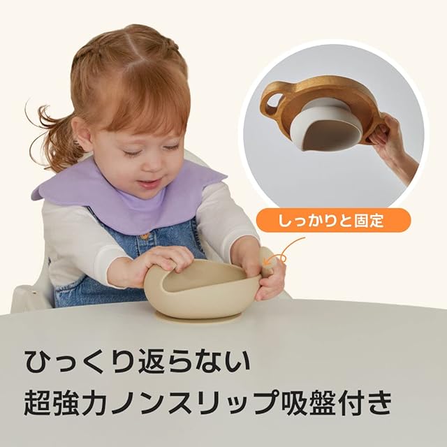 【ひっくり返らない】超強力吸盤がテーブルにしっかりと固定され、掴んで揺らしても食べ物がこぼれにくいのでお食事タイムがより楽になります。