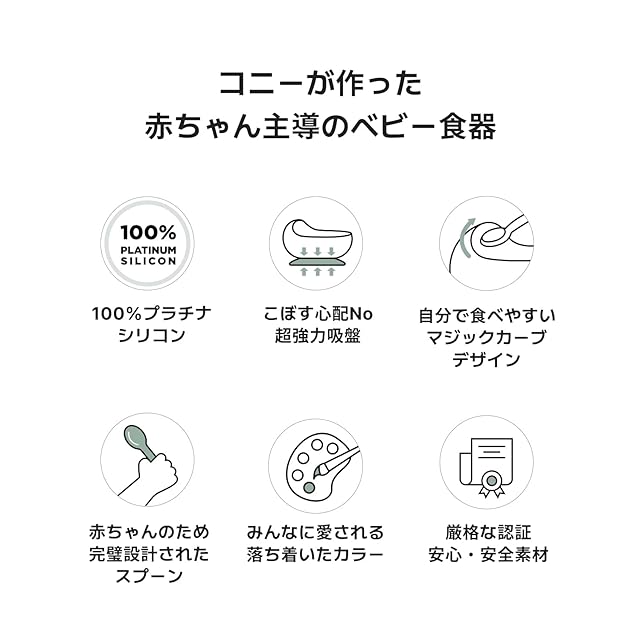 コニーシリコンボウル&スプーンセット(Konny) 熱湯消毒・食洗機・電子レンジ可 ひっくり返らない プラチナシリコン 食器セット 吸盤付き お食事 BLW 赤ちゃん主導の離乳食 ベビー食器 専用スプーン コニー (Grey Seed・グレーシード)