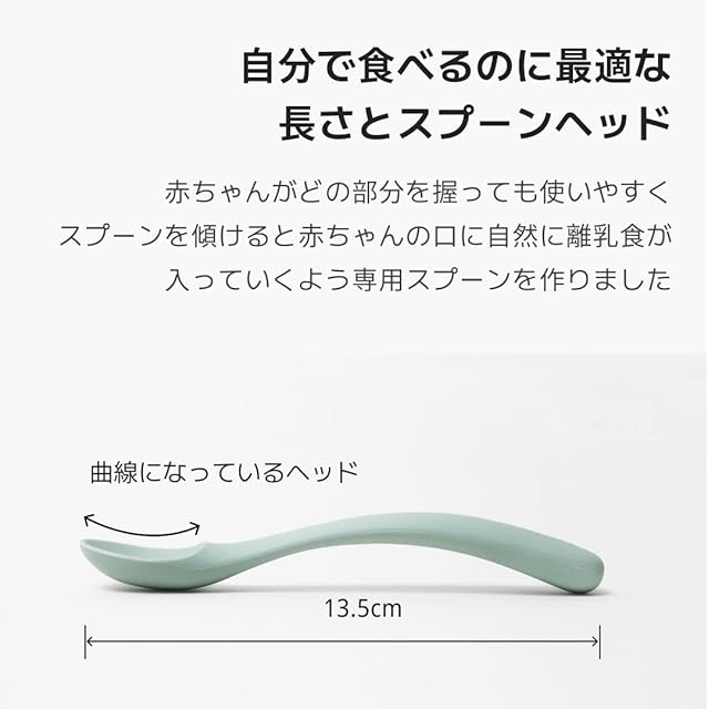 赤ちゃん一人で「マジックカーブ」に沿ってスプーンを持ち上げると、ちょうどいい一口サイズの量になります。