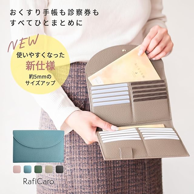 [RafiCaro] お薬手帳 ケース 母子手帳 カバー 牛革 カード 20枚 まとめて収納 2人分 ペンホルダー 多ポケット 大容量 診察券 保険証 グレージュ