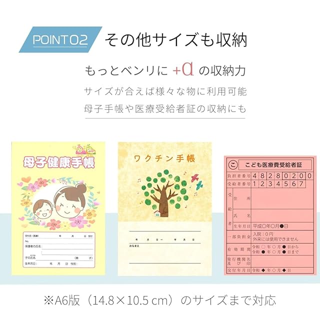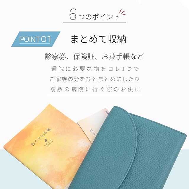 【通院アイテムまとめて収納】 保険証や診察券、お薬手帳まで。通院に必要なものがすっきり収まる牛革製ケース。増えがちなカード類も余裕の20ポケット。フリーポケットはA6サイズ対応で、一般的な母子手帳も収納可能です。領収書類をサッとしまえる背面ポケットに、ペンホルダーも付いています。