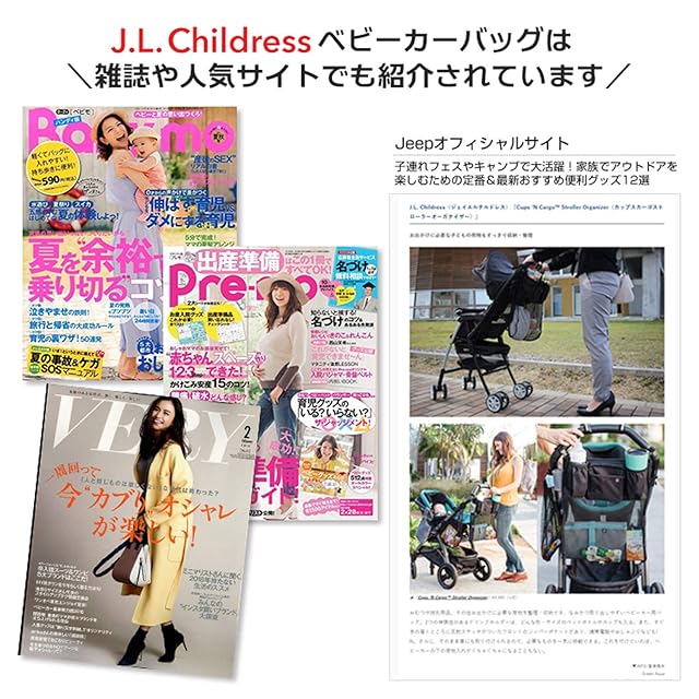 ベビーカーアクセサリーの人気ブランド J.L. Childress(ジェイエルチルドレス) の【Cups 'N Cargo Stroller Organizer】は、日本でもベビーカーを使用する多くのママに支持され続けているストローラーオーガナイザー(ベビーカーバッグ)です。