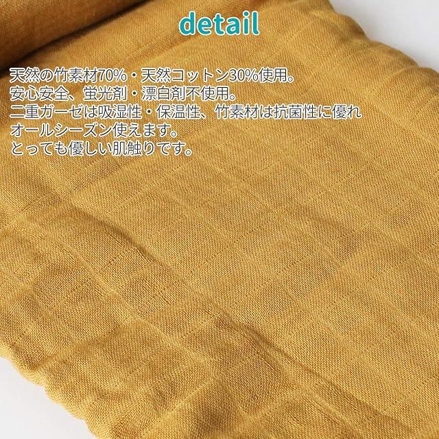 竹布繊維は通気性・抗菌性にも優れ、雑菌が繁殖を防ぎ、汗っかきな赤ちゃんにも安心です。優しい風合いの2重ガーゼで、オールシーズン気持ち良く使えます。