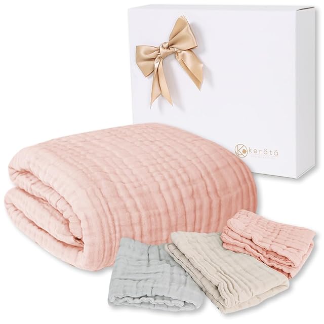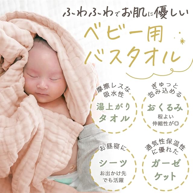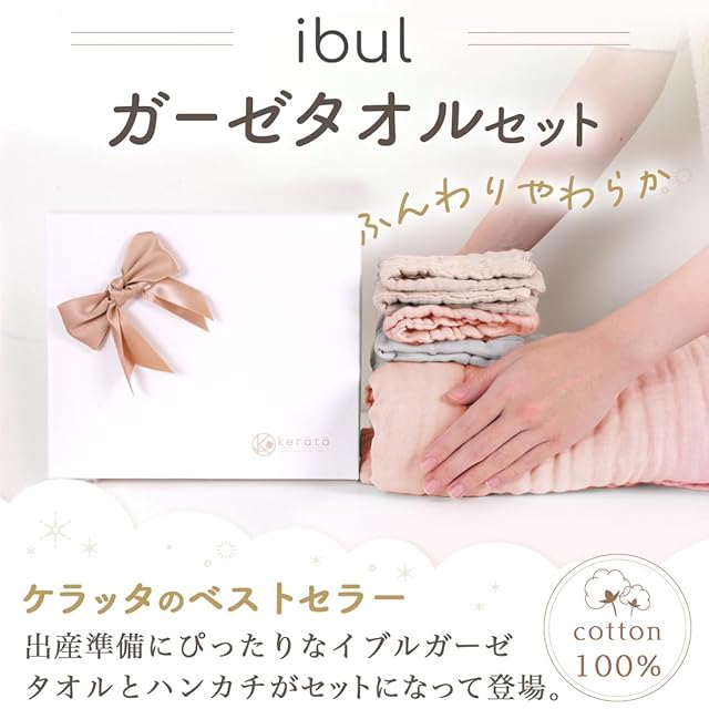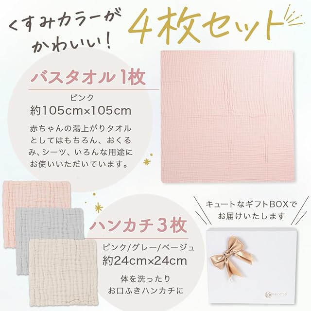 (ケラッタ) イブル 出産祝い ベビー バスタオル タオル ハンカチ ギフト 4枚セット 赤ちゃん 6重ガーゼ (a. ピンクセット)
