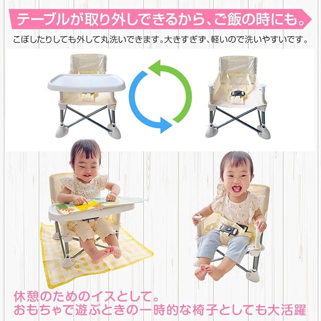 H∞HealthyLifeベビーチェア テーブルチェア 赤ちゃん 子供 レジャーシートセット 折り畳み携帯お食事椅子 収納袋セット(ベージュ)