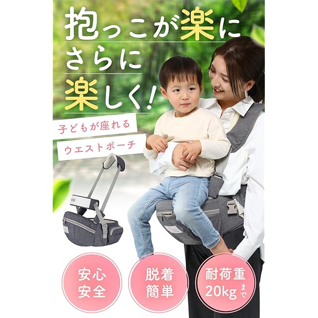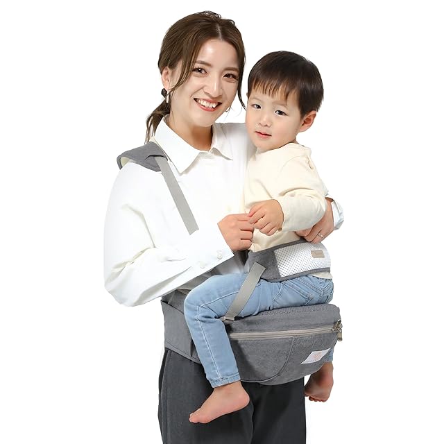 Speaks ヒップシート 抱っこ紐 【抱っこが楽になる】 ウエストポーチ 補助ベルト付き 耐荷重20kg 散歩 贈り物にも ベビーキャリア ポケット 赤ちゃん すべり止め 取付説明あり (スイートグレー)