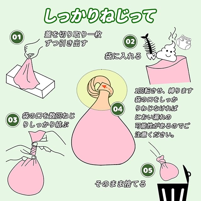 【汎用性】赤ちゃんや介護のおむつ、ベビー用オシッコシート、サニタリー用品など、より多く使い道に合わせています。おむつだけではなく日々の生ゴミやペットのウンチにも使えます。