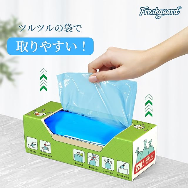 Freshguard 防臭袋 おむつが臭わない袋 M 220枚入 消臭袋 オムツ処理袋 匂わない袋 徹底消臭 箱型(ブルー、M/220枚)