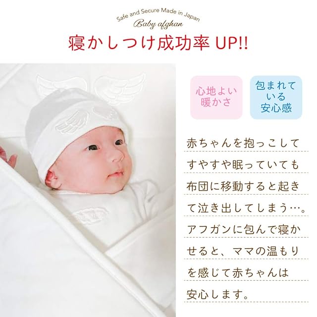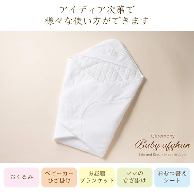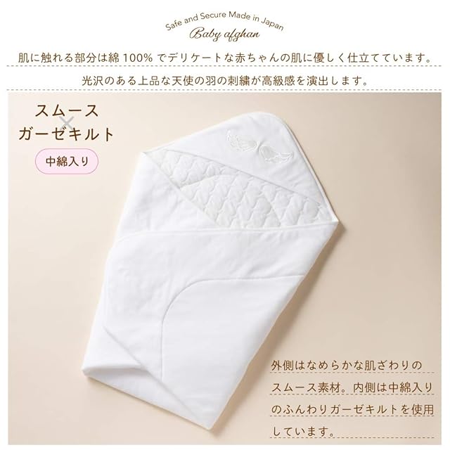 [クリーム デ ココ] 天使の羽 ベビー アフガン おくるみ 厚手タイプ ガーゼ キルト [肌掛け/ケープ/シーツ] 新生児 スムース素材 日本製 85×85cm(オフホワイト)