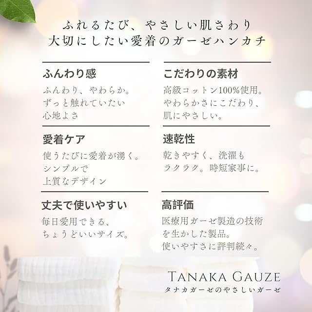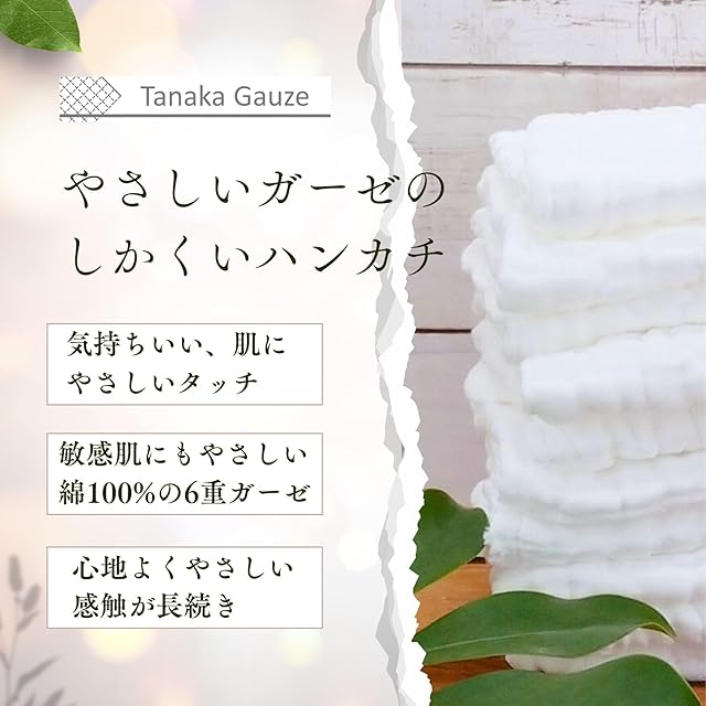 タナカガーゼ しかくいハンカチ ホワイト 21×21cm 10枚セット 綿100% 速乾 吸水 やさしい肌ざわり 赤ちゃん・子ども・大人用 入園準備にも