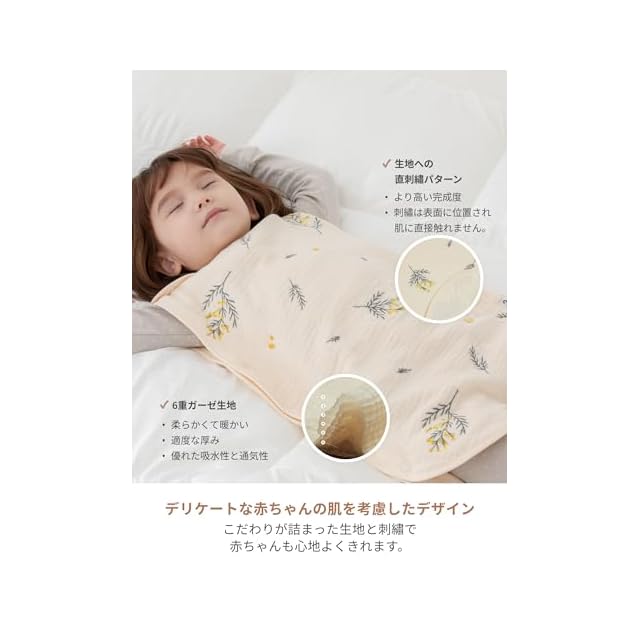 [Konny] コニーベビースリーパー 着るお布団 綿100% 6重ガーゼ 刺繍パターン 赤ちゃん お昼寝 寝冷え防止 スナップ 着脱簡単 0歳~5歳まで