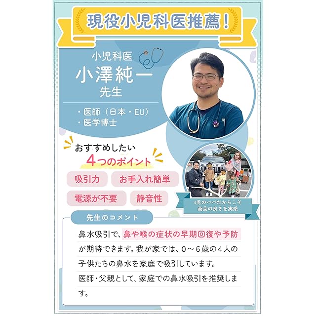 ✅【鼻水吸引器で赤ちゃんの快適な呼吸を実現】小児科や耳鼻科の先生もご家庭での鼻水吸引を推奨されています。鼻水吸引器があれば、赤ちゃんの鼻水吸引をご家庭で行うことができます。鼻の穴が小さく少量の鼻水で鼻詰まりしてしまう子供がいらっしゃれば、電源いらずで手軽に持ち運びができる子供用鼻水吸引器をお手元に。