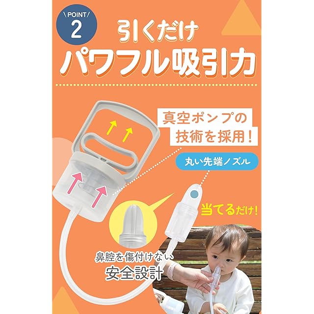 ✅【独自開発のグリップ形状】私たちの子供用鼻水吸引器は独自開発のグリップ形状によって握力に負担がなく、安定して握ることができます。また、デリケートな赤ちゃんの鼻水吸引に対して、吸引力の調整もしやすいので、鼻水吸引器による赤ちゃんへの負担がありません。更に手動なので、赤ちゃんが怖がる電動音もなく、眠りを妨げません。