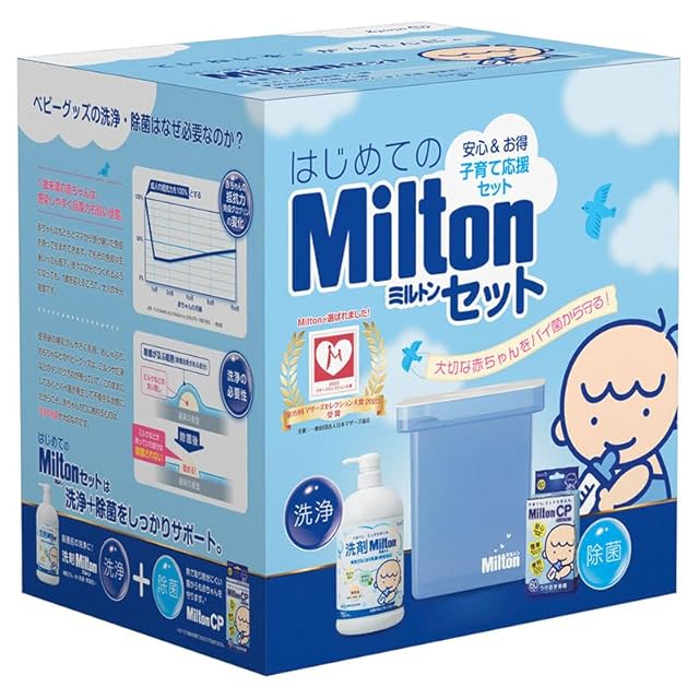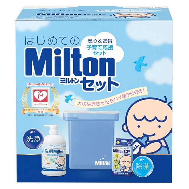 ミルトン はじめてのMiltonセット【ミルトン専用容器,MiltonCP(錠剤タイプ)60錠,洗剤Milton哺乳びん・さく乳器・野菜洗い 本体 750ml】