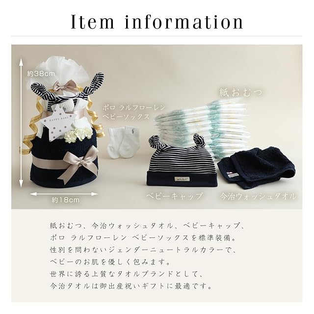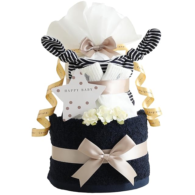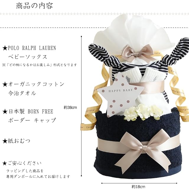 おむつケーキ研究所 ラルフローレン おむつケーキ 今治タオル オーガニックコットン 2段 男の子 女の子 ギフトセット ネイビー ダイパーケーキ ベビー ソックス BORN FREE ボーダー キャップ パンパーステープタイプSサイズ『ソックス 6~12か月(約9~12cm)』