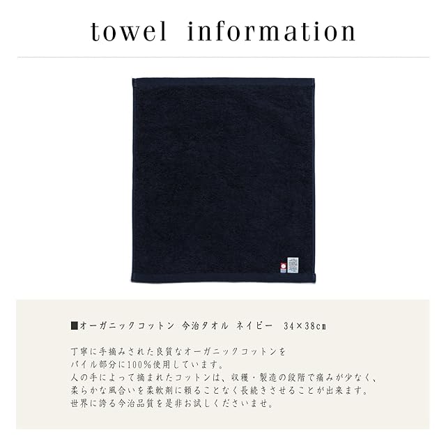 オーガニックコットン 100% 今治タオル ゲストタオル ネイビー★×1 日本製 BORN FREE ボーダー キャップ 紺★×1