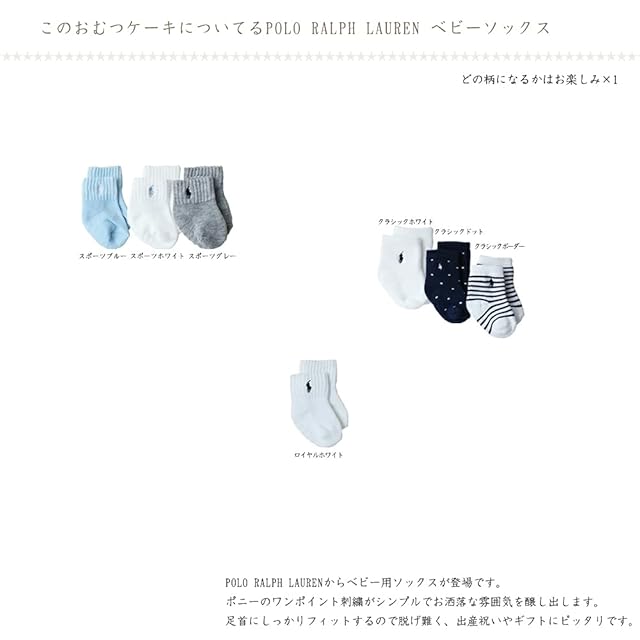 POLO RALPH LAUREN ポロ ラルフローレン ベビーソックス『ロイヤルホワイト or クラシックホワイト or クラシックドット or クラシックボーダー or スポーツホワイト or スポーツブルー or スポーツグレー』どの柄になるかはお楽しみ★×1