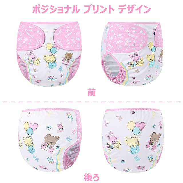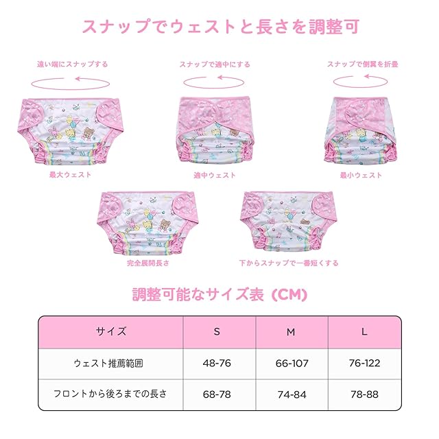 [LittleForBig] 大人用布おむつカバー 可愛い絵柄【保育園】 調節可能なウエストと長さ スナップ付 漏れ防止 通気性 洗濯可 ピンク M