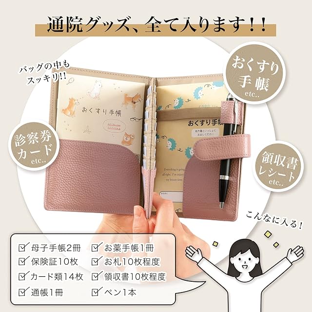 【様々な用途にマルチに使える】お薬手帳以外にも、母子手帳ケースとして、エコー写真やお守りを入れて持ち運んだり、スケジュール帳を入れると、仕事用の手帳としても使用可能です。BLUE SINCERE(ブルーシンシア)のマルチケースにはペンホルダーが付いているので、必要なタイミングですぐに書き込めるのもうれしいポイント◎ 複数購入で、用途に合わせて使い分けもおすすめです。