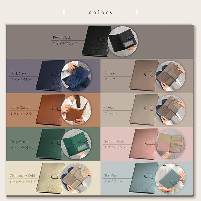 【 素材 】 牛本革 トップグレイン シュリンクレザー(植物タンニン鞣し) 【 カラー 】 ロイヤルブラック・グレージュ・レトロキャメル・ダークネイビー・ディープグリーン・スワニーピンク・スカイブルー・シャンパンゴールド・メタリックシルバー
