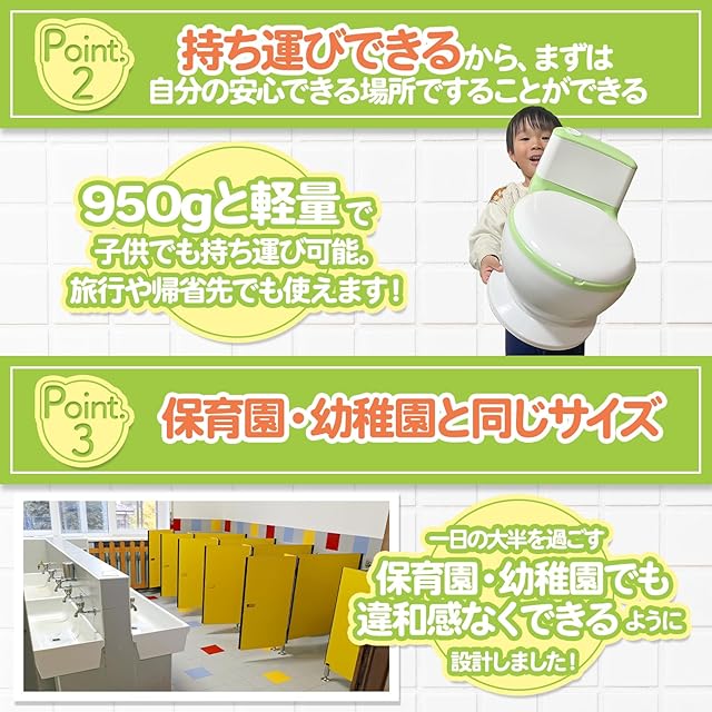 【驚きの軽さ】重さ約1kgと最軽量!子供でも持ち運びできるので、自分が安心できるところでトイトレができます。車移動での旅先や帰省にも最適