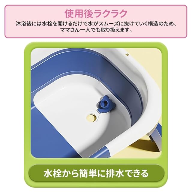 【使用用途いろいろ】クッション使用する事で0歳から使用可能広々とした浴槽の為、子供を座らせて使用可能です。アウトドア使用、お子様の水遊び、靴洗い、ペットのお風呂など使用用途が様々です。