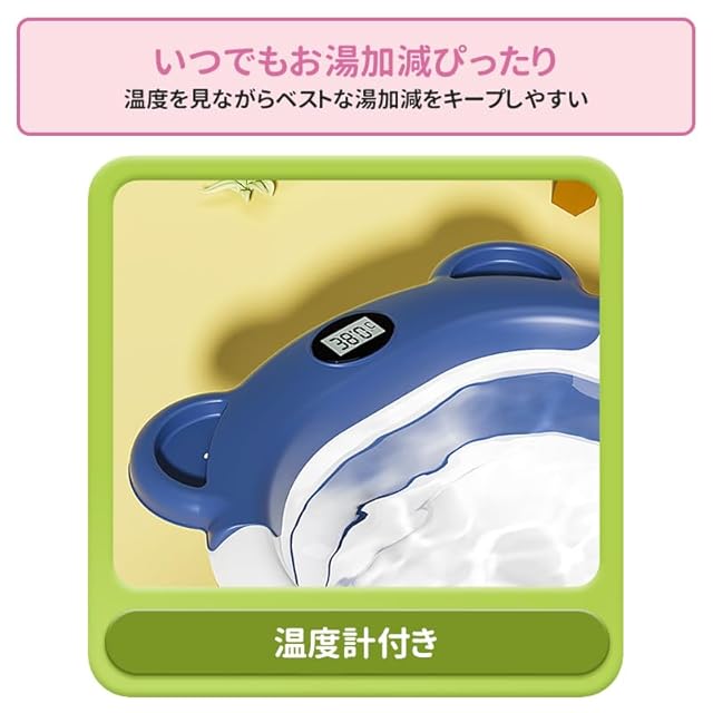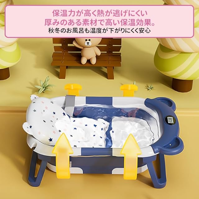 ZOOBLY ベビーバス 折りたたみ クッションセット 湯温計付き 収納便利 赤ちゃん お風呂 沐浴 バスチェア バスタブ コンパクト