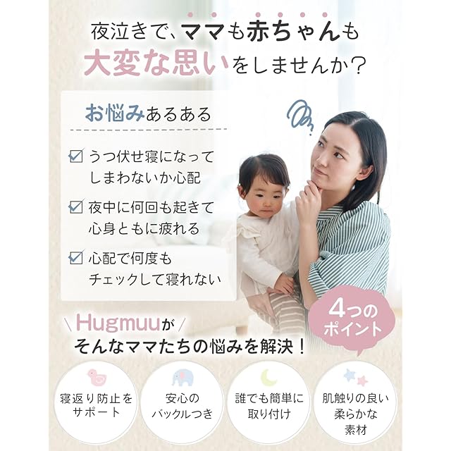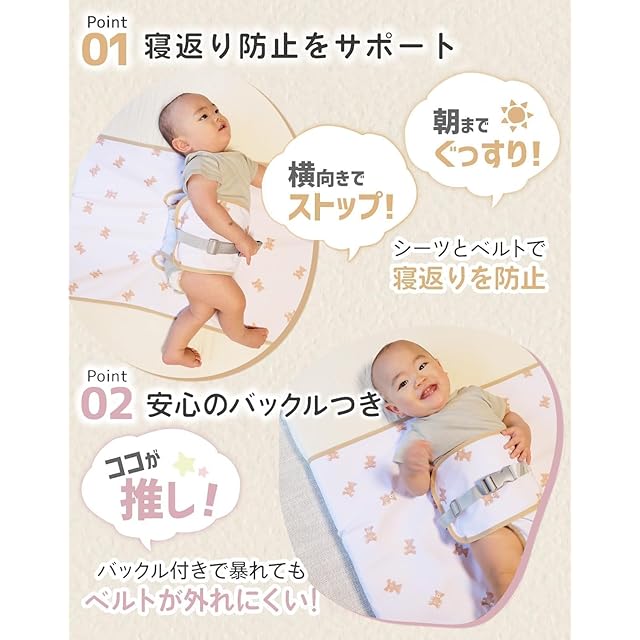 【小児科医 武田賢大先生監修】初めての育児で、赤ちゃんの寝返りが心配になることはありませんか?この寝返り防止ベルトは、そんなご両親の不安を解消し、赤ちゃんの安全な睡眠をサポートするために生まれました。肌触りの良い柔らかな素材を使用しており、赤ちゃんの繊細な肌にもやさしくフィット。赤ちゃんの適切な睡眠環境の補助として使用することで、寝返りによる窒息や姿勢の崩れを防ぎ、夜間でも安心してぐっすり眠れる環境を整えます。サイズ調整も簡単で、赤ちゃんの成長に合わせてフィットさせることができるので、長くお使いいただけます。赤ちゃんの快適さを考えながらも、しっかりと安全性を守るデザインで、育児をサポート。夜の不安が軽減されることで、赤ちゃんと一緒に安心して過ごせるようになり、育児が少しでも楽しいものになってくれることを願っています。