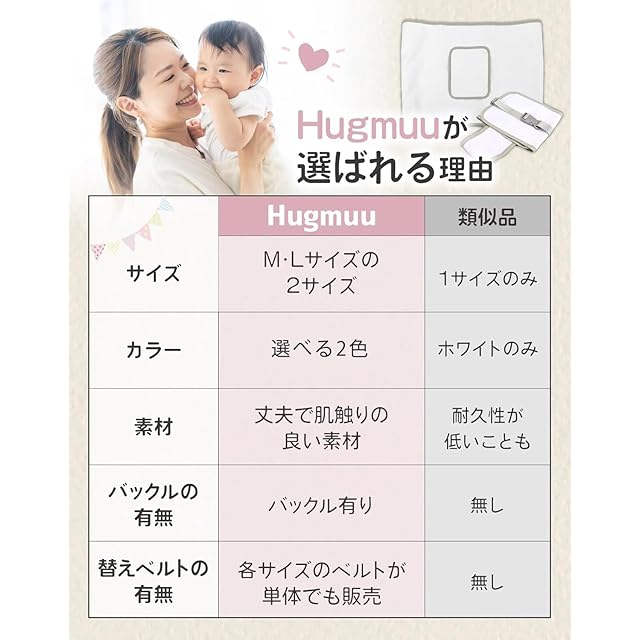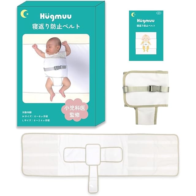 【小児科医監修】 寝返り防止ベルト シーツ 赤ちゃん うつ伏せ寝 防止 ベビーベッド うつぶせ防止 寝返り防止 ベルト Hugmuu ハグムー (White, M)