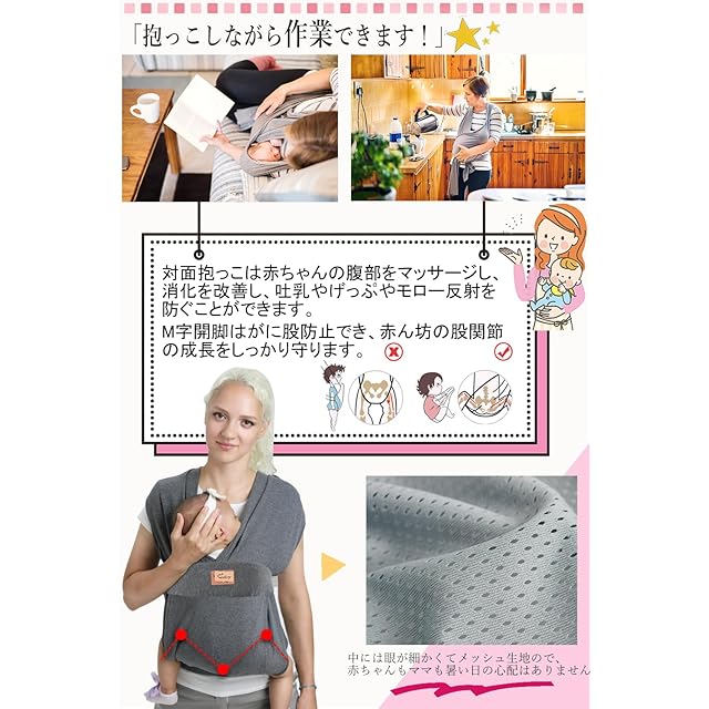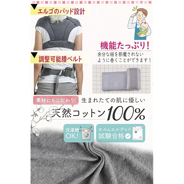 【柔らかく 通気性よくおんぶ紐】具合に伸びるストレッチ素材で、夏でも蒸し暑くなく、赤ちゃんにとって通年も快適です。ウエストとベビーの大きさに合わせてサイズも簡単に調節でき新生児だっこ紐です。手や洗濯機で洗える吸湿速乾の生地です。
