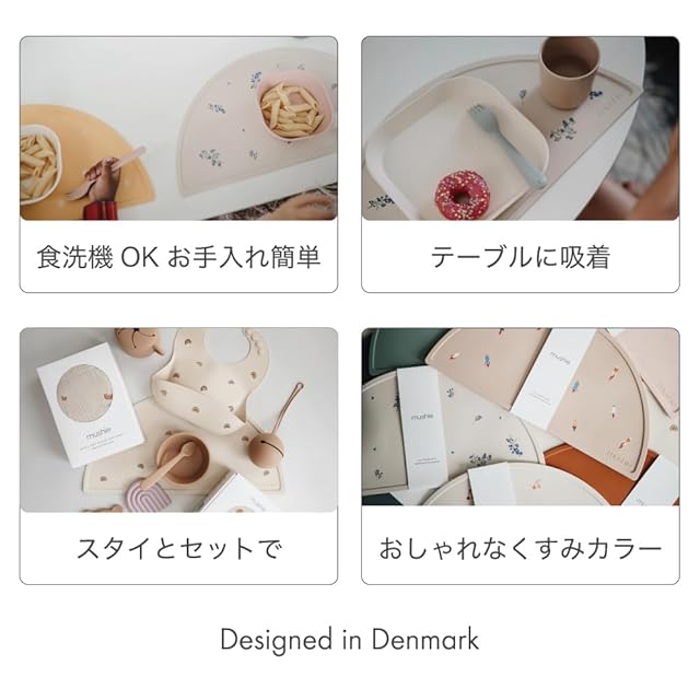 mushie(ムシエ) シリコンマット ランチョンマット 離乳食 シリコン 洗える お食事マット 北欧 おしゃれ Silicone Mat Rocket