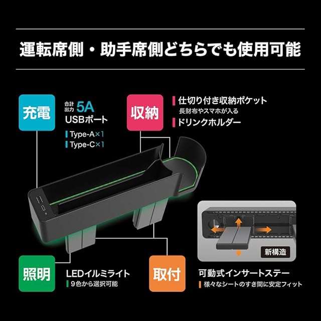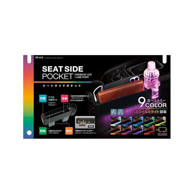 槌屋ヤック(Tsuchiya Yac) 車内用品 収納 シートサイドポケットレインボー USB+TypeC PF-412