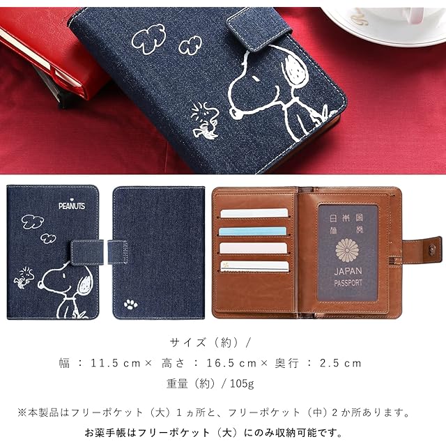 [スヌーピー/SNOOPY]通院ケース お薬手帳 診察券入れ 診察券ホルダー 保険証 財布 デニム (ブルー) [並行輸入品]