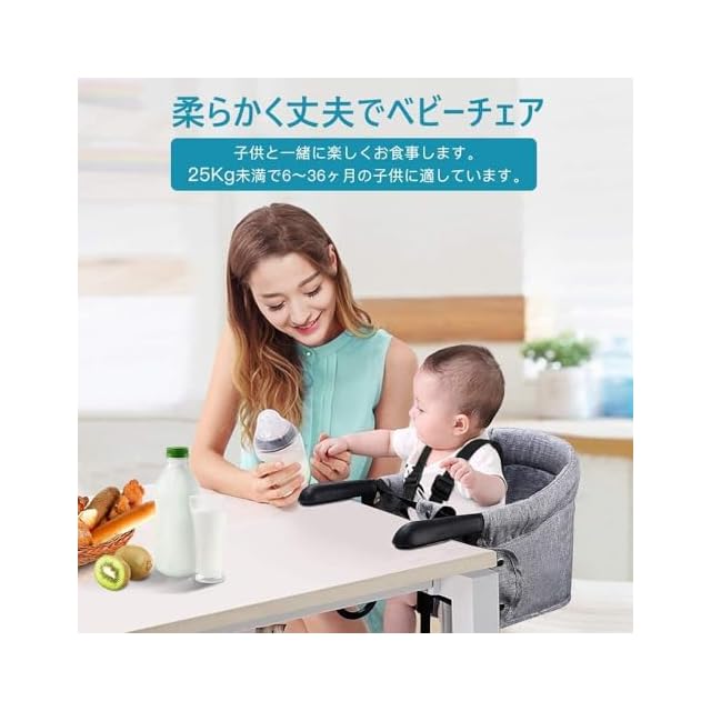 【丈夫でベビーチェア】丈夫で耐久性が良いステンレス鋼製固定具とアルミ合金フレームで作られています。負荷は最大25kgです。ベビーテーブルチェア内側のシートは、心地の良い生地を採用し、柔らかく丈夫で、通気性も抜群です。