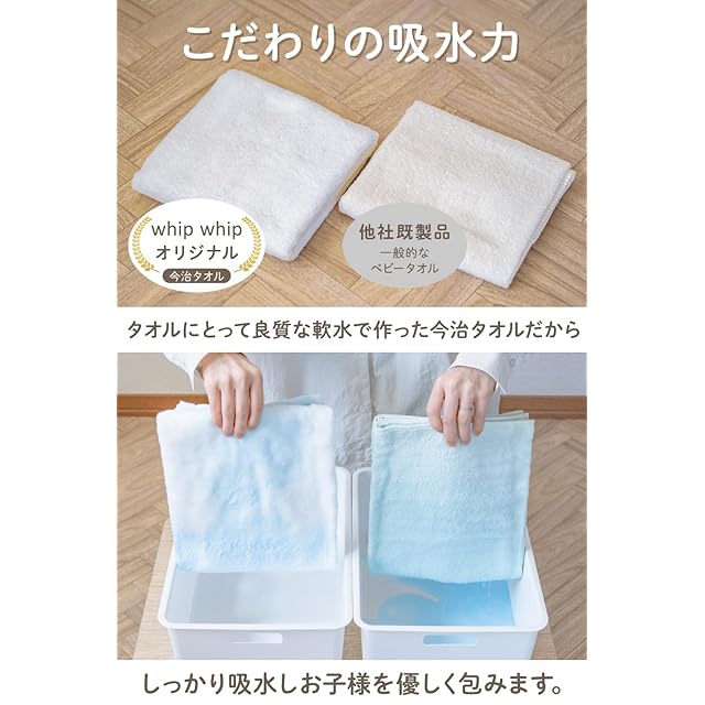 【吸水力】タオル にとって良質な軟水を使用し吸水力のある ベビータオル に仕上げました。