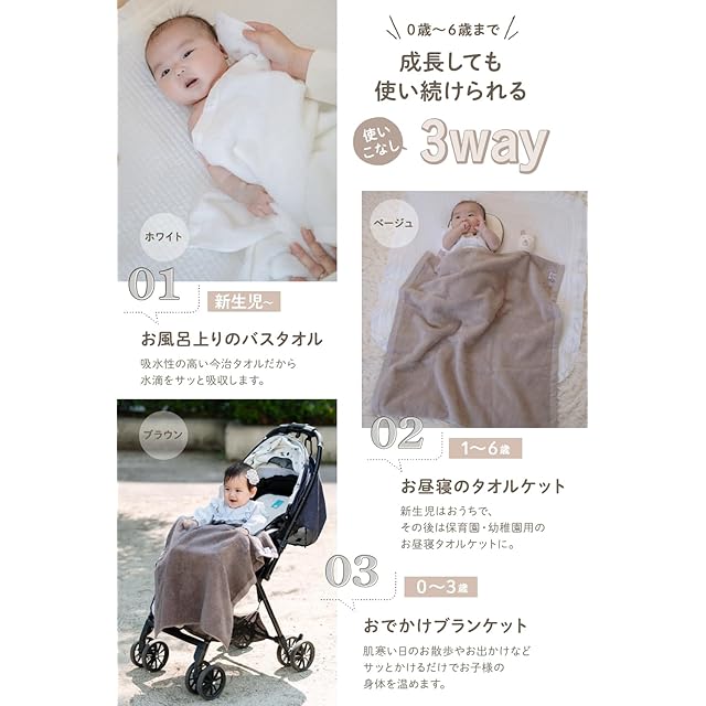 【形状】成長しても使用できるよう 正方形 に。0歳児は 湯上りタオル や ブランケット として。 保育園や幼稚園ではお昼寝のかけ布団として。