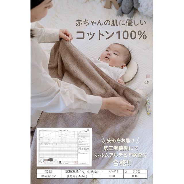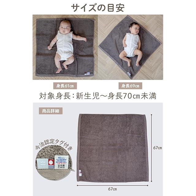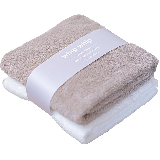 今治タオル whipwhip ベビータオル 新生児 バスタオル 正方形 日本製 67cm×67cm (ホワイトxベージュ)