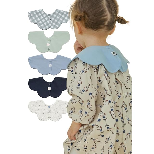 [Konny] コニーベビースタイ セット Baby Bib 360°ローリング よだれかけ 吸収性・速乾性 シンプル 女の子 男の子 ベビーコーデ 出産祝い おしゃれ プレゼント 5枚-1(Mint, Navy, Blue Dot, Blue, Sage Gingham)