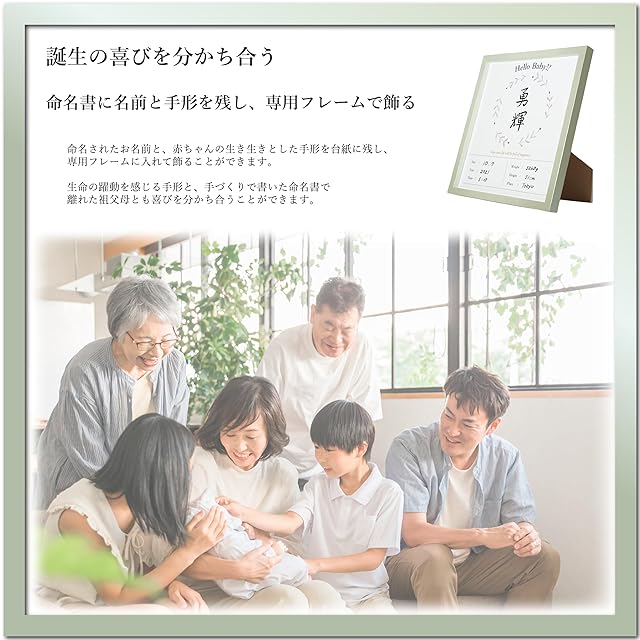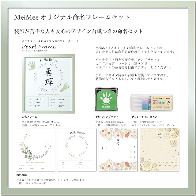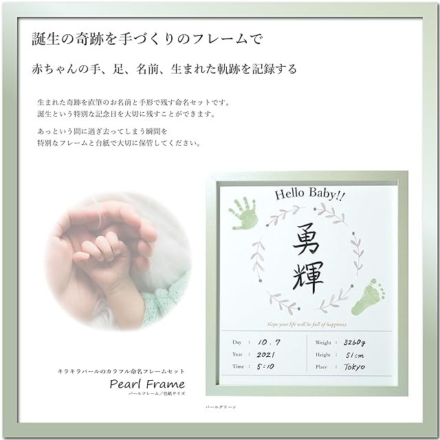 MeiMee 命名書 自分でつくる メイドバイミーの命名フレームセット (パールグリーン, 色紙サイズ(シングル))