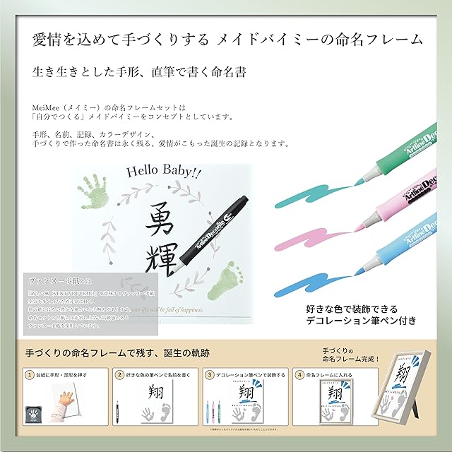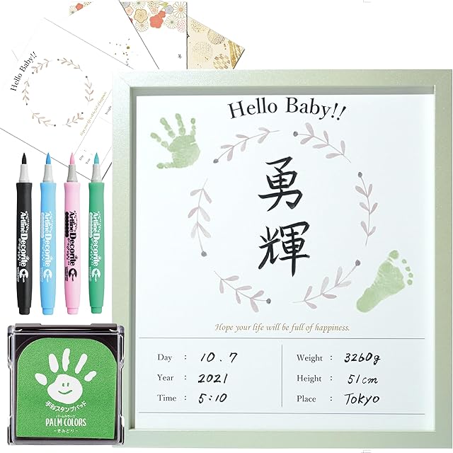 自分でつくる命名フレームセット:命名紙、専用フレーム、スタンプパット、デコレーションペン