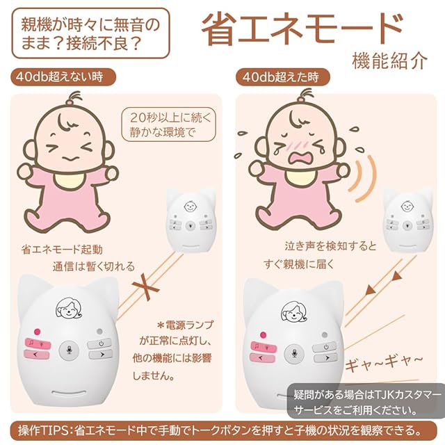TJK ベビー用音声モニター ナイトライト搭載 子守り唄付き 2WAYトーク 遠隔操作 クリップ付き 育児 赤ちゃん 子守り ディジタルベビーモニター ベビー/ペット/老人介護 見守り/出産祝い プレゼント