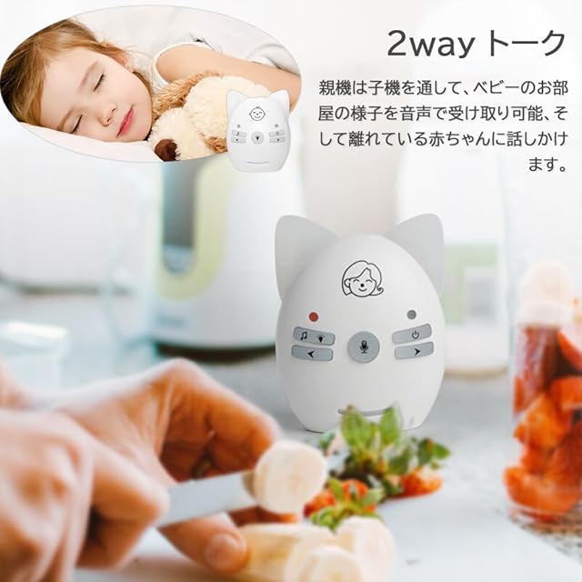 2WAY トーク可能:赤ちゃんにお母さんの声を届ける事ができて、親機のトークボタンを押すことによりお子様との通話が可能です。