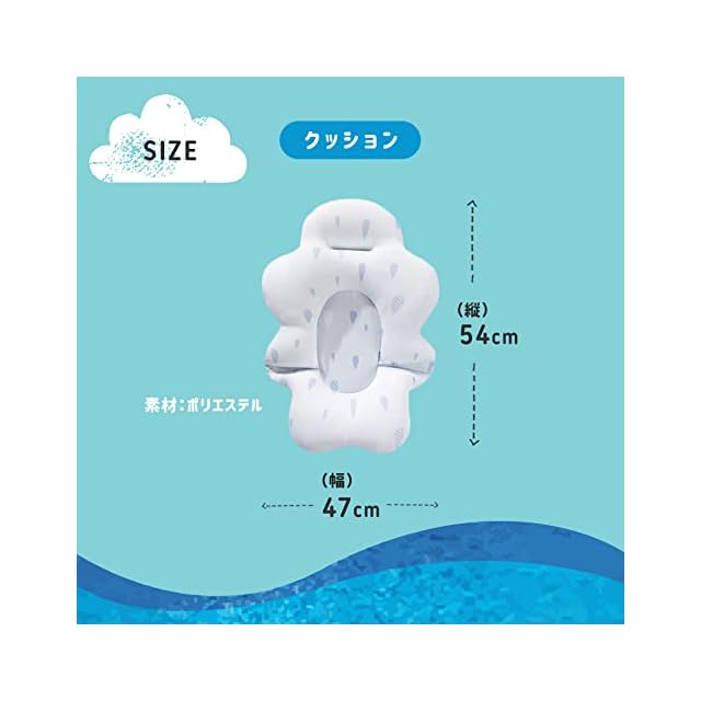 【3層構造のバスクッション】クッション中央部にはEPS粒子を使用の為98%の空気を含み水に浮き、赤ちゃんを支える事が可能です。EPS粒子は3Dメッシュと防水布でおおわれている為、水の吸収を押さえます。赤ちゃんの肌が触れる部分は柔らかい素材の為安心です。