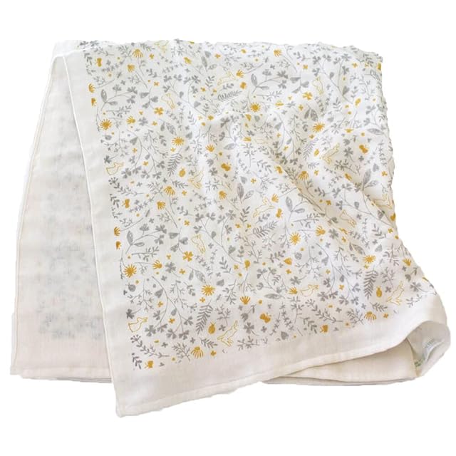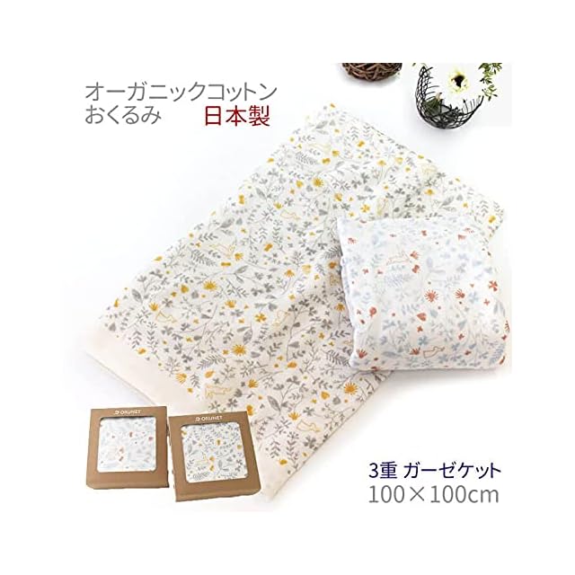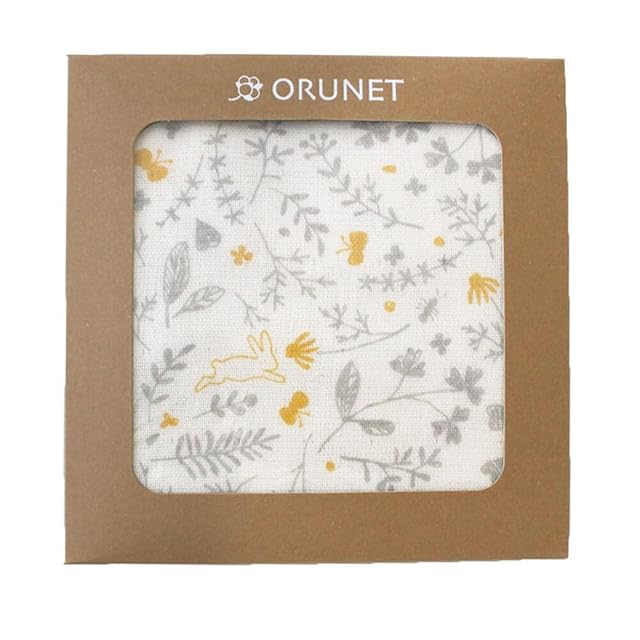 おくるみ ガーゼ 日本製 春夏 春 夏 退院 新生児 オーガニックコットン ガーゼケット 3重ガーゼケット ボタニカル 出産祝い 今治 ORUNET オルネット グレー×イエロー,ボタニカル