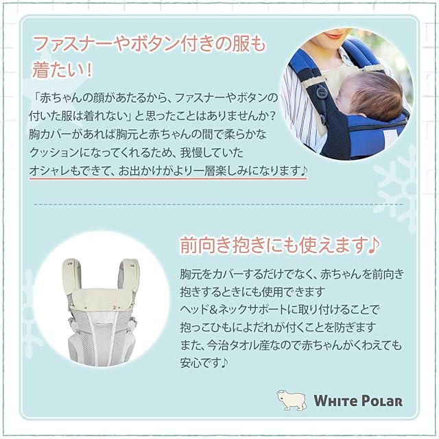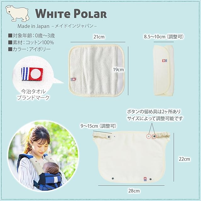 WHITE POLAR 抱っこ紐カバー 今治 胸カバー セット よだれカバー エルゴ よだれパッド ベビーカー タオル 綿100% 日本産