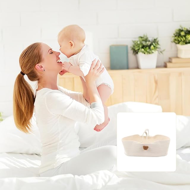 【多機能性と便利な収納】:この手提篮には多くの機能があります。おむつやおもちゃの収納スペースがあり、赤ちゃんの必需品を整理するのに便利です。