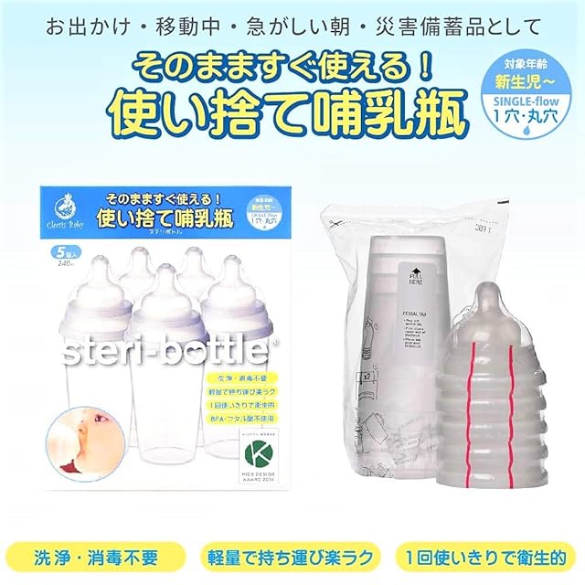 ステリボトル240ml 5個入×2箱セット お出かけ帰省に最適! 消毒不要使い捨て哺乳瓶 steri-bottle クロビスベビー