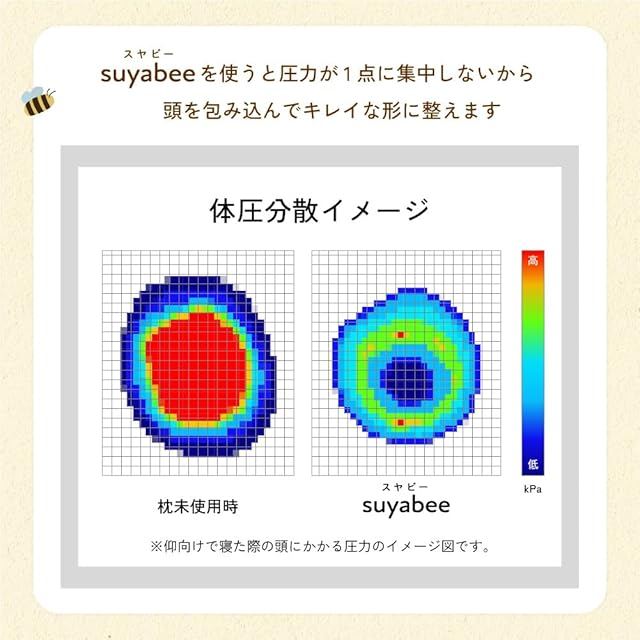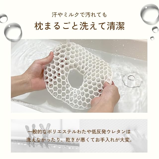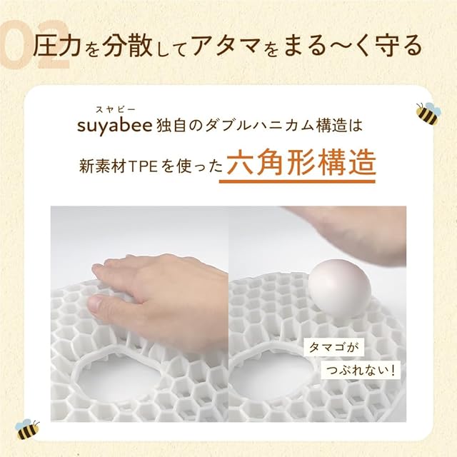 TPE素材の六角形構造で圧力を分散し、頭をまるーくサポート!
