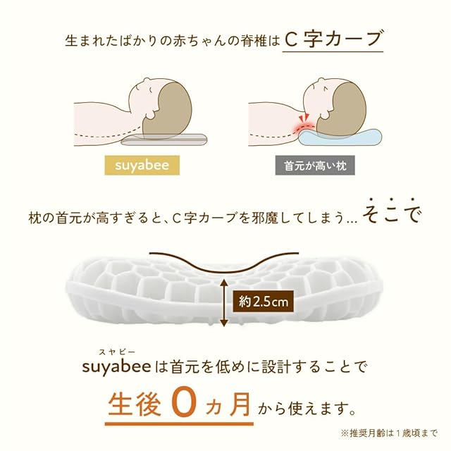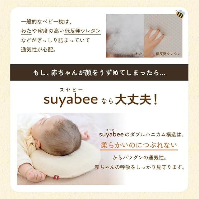 呼吸を守る ベビー枕 suyabee スヤビー ガーゼカバー 赤ちゃん 新生児 向き癖 ドーナツ枕 ベビーまくら 枕 ピロー 綿 絶壁予防 吐き戻し 頭の形 洗える 丸洗い プレゼント 出産祝い